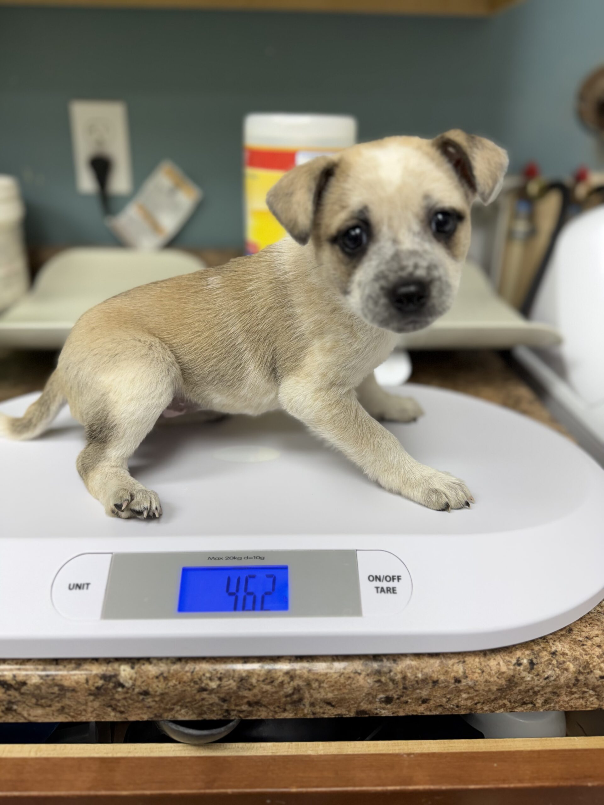 Female mixed breed pup – 3 months old. Friendly with other dogs. Arriving Feb 21.